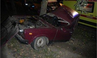 В Костроме «семерку» от столкновения с деревом согнуло пополам. Один из пассажиров погиб, а водитель убежал с места аварии.
