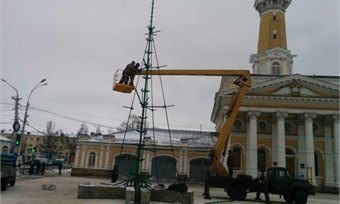 Несколько рабочих устанавливали сегодня каркас будущей елки, чем сильно удивили костромичей, которые наблюдали, как что-то непонятное превращается в елку.