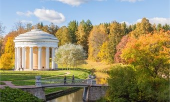 Камерон создавал постройки, которым бы позавидовали боги Олимпа. Самой чудесной, мне представляется Храм дружбы в Павловске. Этот живописный вид, идеального строения с колоннами, отражается в Славянке и прекрасен в любое время года. Особенно летом и осенью. Этот храм был презентом Екатерине II от Павла Петровича, как благодарность за подаренные земли. На стенах постройки расположены медальоны с отображением аллегорических сюжетов, посвященных императрице. А в нише расположена скульптура самой Екатерины в образе Цереры.