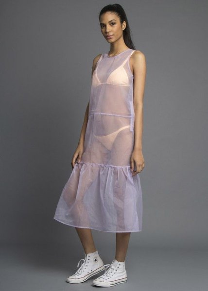 Этот вариант только для смелых, так как это платье будет открывать весь комплект нижнего белья, что вы наденете. Лучше выбрать высокие трусы и довольно простой закрытый верх одного тона — белого или черного.