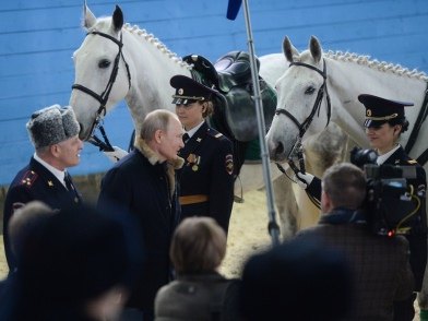 А накануне, он побывал в расположении 1-го оперативного полка полиции ГУ МВД России по городу Москве. Там Владимир Путин поздравил сотрудниц 1-го оперативного полка московской полиции с Международным Женским Днём. Главу государства сопровождал Министр внутренних дел РФ Владимир Колокольцев. Приглашение от сотрудниц туристической и конной полиции поступило Президенту 28 февраля перед расширенным заседанием коллегии МВД России. Владимир Путин принял приглашение. Прошла всего неделя и праздничный визит состоялся. Вниманию Главы государства была предложена экспозиция по истории конной полиции, образцы экипировки.