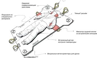 Сотни сенсоров позволят получить информацию о состоянии человека и с помощью робосистем оказать помощь, например, поставить капельницы или ввести лекарственные препараты.