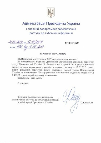 Зеленский получил всего лишь 485$, что в переводе на российскую валюту немного превышает 30 тысяч рублей. При этом 94$ были удержаны из его заработной платы в качестве налога. Документ был опубликован источником Фактор-info.