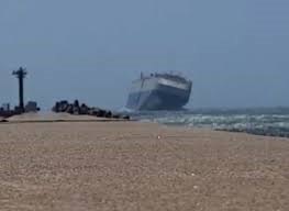Ветер чуть не опрокинул большое грузовое судно (видео)