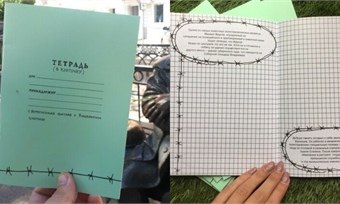На этот раз многие родители школьников даже не поняли, что это не обычная, а «альтернативная» тетрадь, и купили ее для своих детей. Колючая проволока на обложке почему-то мало кого смутила.