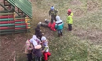 Это все заснял на телефон жилец дома напротив. Он ждал, когда воспитательница вмешается, но она подошла только после того, как увидела, что происходящее фиксируют на камеру телефона.