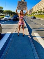 Бизнесвумен из Петербурга провела пикет на набережной у здания Смольного. Девушка потребовала открыть салоны красоты, для чего обмоталась красно-белой лентой и захватила плакат.