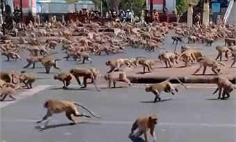 Полчища голодных макак-крабоедов устроили в таиландском городе Лопбури настоящий бунт.