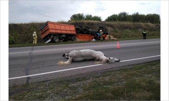 По данным издания, авария произошла в среду, 26 августа, в 05:55 утра на 15 километре автодороги Фатеж – Дмитриев. После столкновения с животным грузовик съехал в кювет и опрокинулся. Лошадь погибла на месте, а водитель «КаМАЗа» был госпитализирован в тяжелом состоянии, но в пятницу, 28 августа, скончался от полученных травм в реанимации.