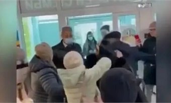 На опубликованных РЕН ТВ кадрах видно, как толпа оттиснула мужчину, сыграв на численном преимуществе. Одна из участников «штурма» выкрикнула, что QR-код, который от нее требуют, даже не русское слово.