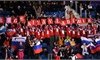 Русские не сдаются. Гимн России звучит на Олимпиаде в Пхенчхане Российские болельщики поют гимн России и заполняют трибуны в одежде цветов российского флага.