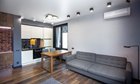 Общая площадь квартиры составляет 57,5/56,3 м². Просторная кухня-гостиная 19,9 м² — это не только место для готовки, но и уголок для семейных ужинов и дружеских посиделок. Здесь уже установлена вся необходимая техника: электроплита, вытяжка, духовой шкаф.